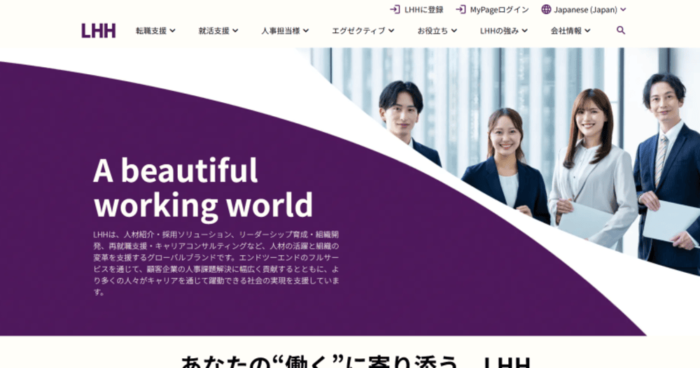 LHH転職エージェントは、スイスの人材サービス企業・アデコグループが運営する転職支援サービスです。グローバルネットワークを活かし、国内外の大手企業や外資系企業との強いつながりを持っており、特に外資系やハイクラス転職に強みがあります。