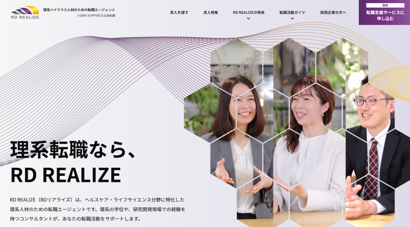 RD REALIZEは、食品・化粧品・バイオ・ヘルスケア業界に特化した転職エージェントです。