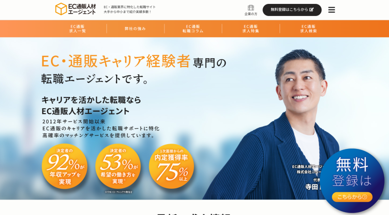 EC&通販求人 転職エージェント(通販人材エージェント)は、ECと通販求人のみを扱っているエージェントです。