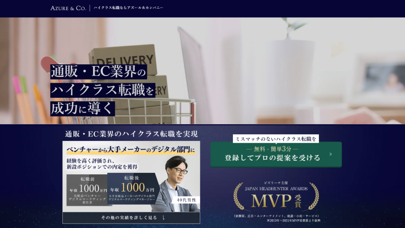 アズール&カンパニーは、消費財業界や外資系企業に特化した転職エージェントです。
