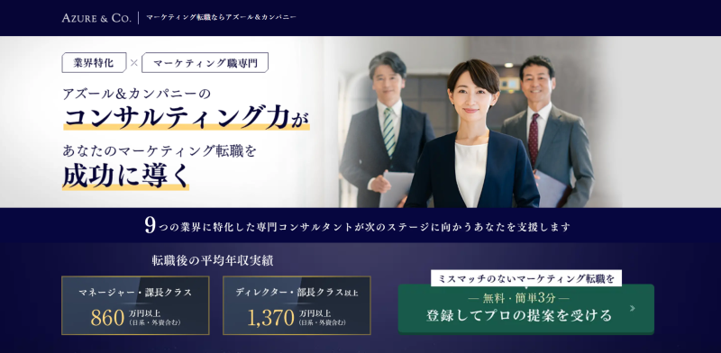 アズール&カンパニーは、外資系企業や高級消費財業界を中心とした業界特化型の転職エージェントです。