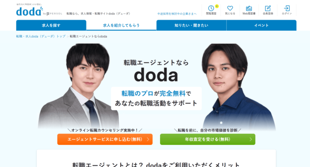 パーソルキャリアが運営するdodaは、エージェントサービスやスカウトサービスを総合的に提供している転職情報サービスです。