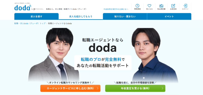 doda(デューダ)は、経験者や即戦力人材の中途採用に特化した転職エージェントです。