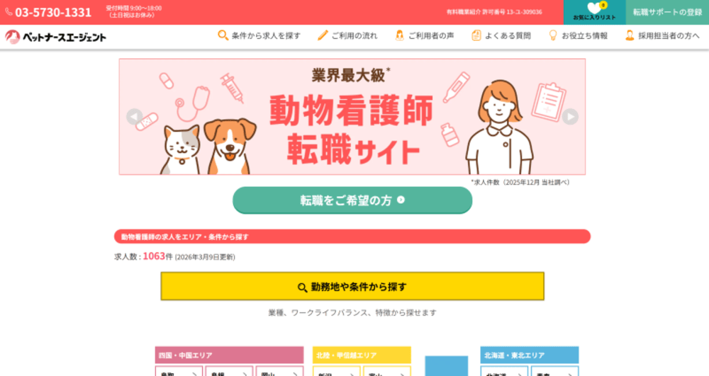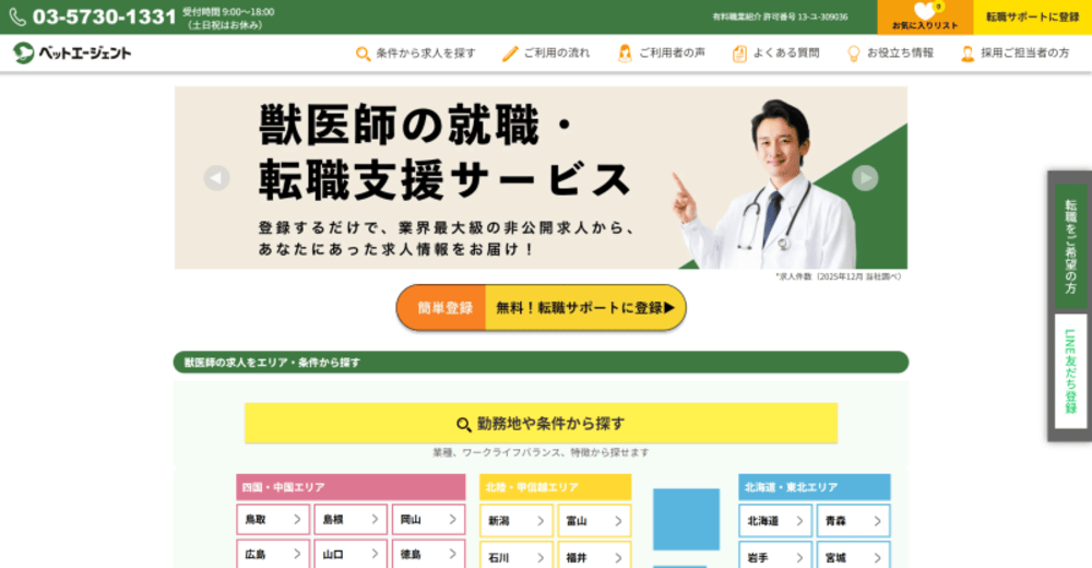 VetAgent(ベットエージェント)は、獣医師に特化した転職エージェントです。全国の動物病院やペット関連企業の獣医師求人情報を取り扱っています。