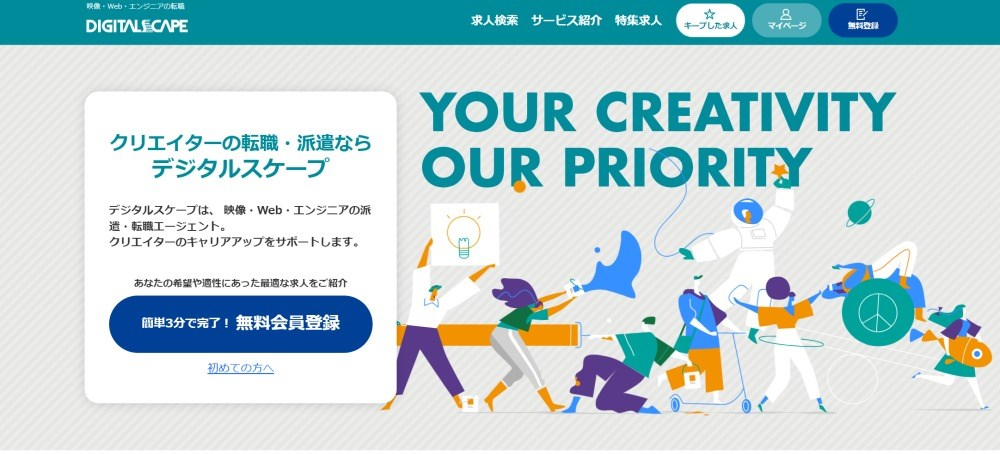 デジタルスケープは、クリエイティブとIT業界に特化した転職エージェントです。マンガ業界の中でも、Webマンガ関連の仕事に就きたい人におすすめです。