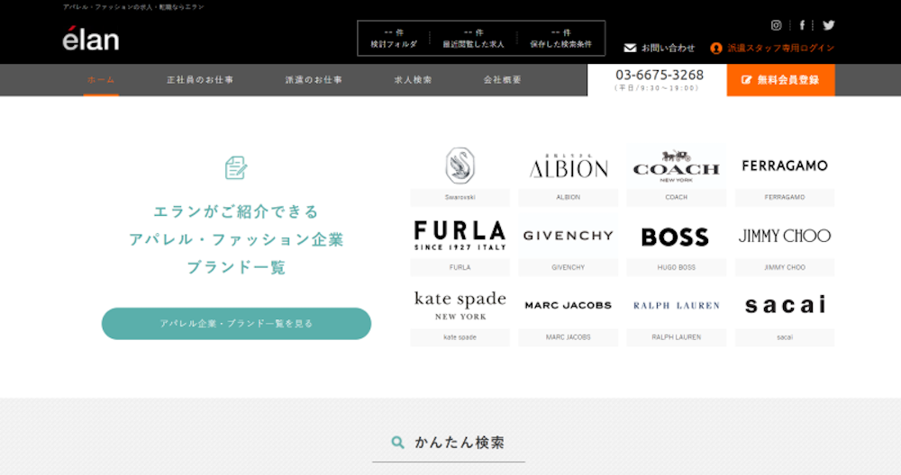 株式会社エランは、アパレル・ファッション業界に特化した求人情報サイトで、転職支援サービスも提供しています。正社員求人や人気ブランドの募集案件を豊富に取り扱っており、専任のコンサルタントから、希望や経験に応じた求人を紹介してもらえます。