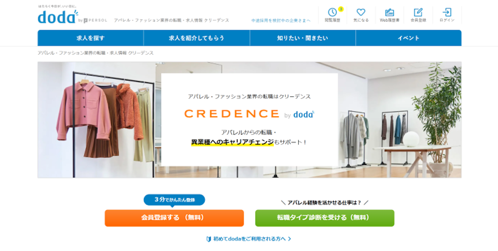 クリーデンスは、パーソルキャリア株式会社が運営するファッション・アパレル業界に特化した転職エージェントです。
